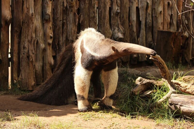 Giant anteaters are insectivores that mainly consume ants and termites. They have short feeding periods at many locations. Besides insects, they can also opportunistically consume soft-bodied grubs, eggs and fruits.