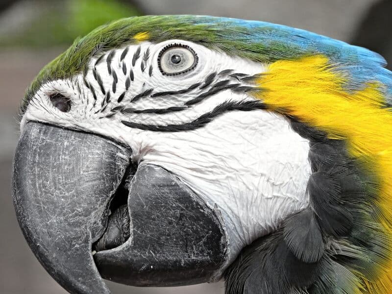 Blue-and-gold macaws are herbivorous birds that mainly consume nuts, seeds, and fruits. They use their beak to crush seeds and nut shells. Occasionally, they ingest clay from riverbanks to help them digest toxins from unripe seeds.
