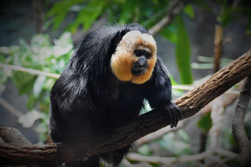 White-faced sakis are herbivorous primates that naturally live in tropical rainforests in northern South-America. Their diet consist largely out of fruits, seeds and leaves. Besides this, occasionally insects and flowers are consumed too.